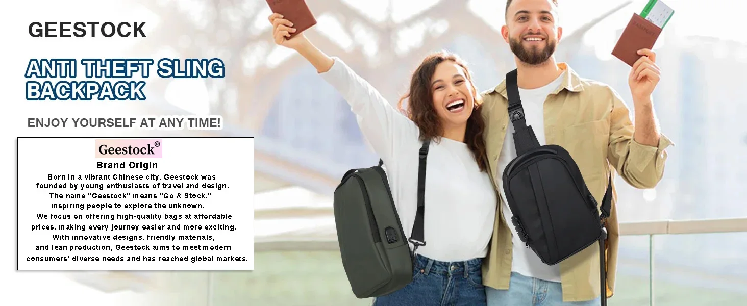Geestock Anti-Theft Crossbody Bag Chest Sling Backpack Men'S Shoulder Bag Travel Messenger USB Chest Bag Shoulder Bag for Travel